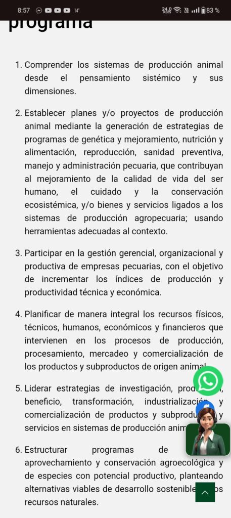 En la universidad de Cundinamarca la carrera de zootecnia válida de unos buenos requisitos del estudiante al entrar , progresar y salir del proceso de la carrera , donde tiene 9 semestres dando a explicar cada uno de ellos su objetivo y meta , al final de la información de la carrera nos dan a conocer los mentores y profesores que nos acompañarán , guiarán y enseñaran durante todo el proceso de nuestra carrera .